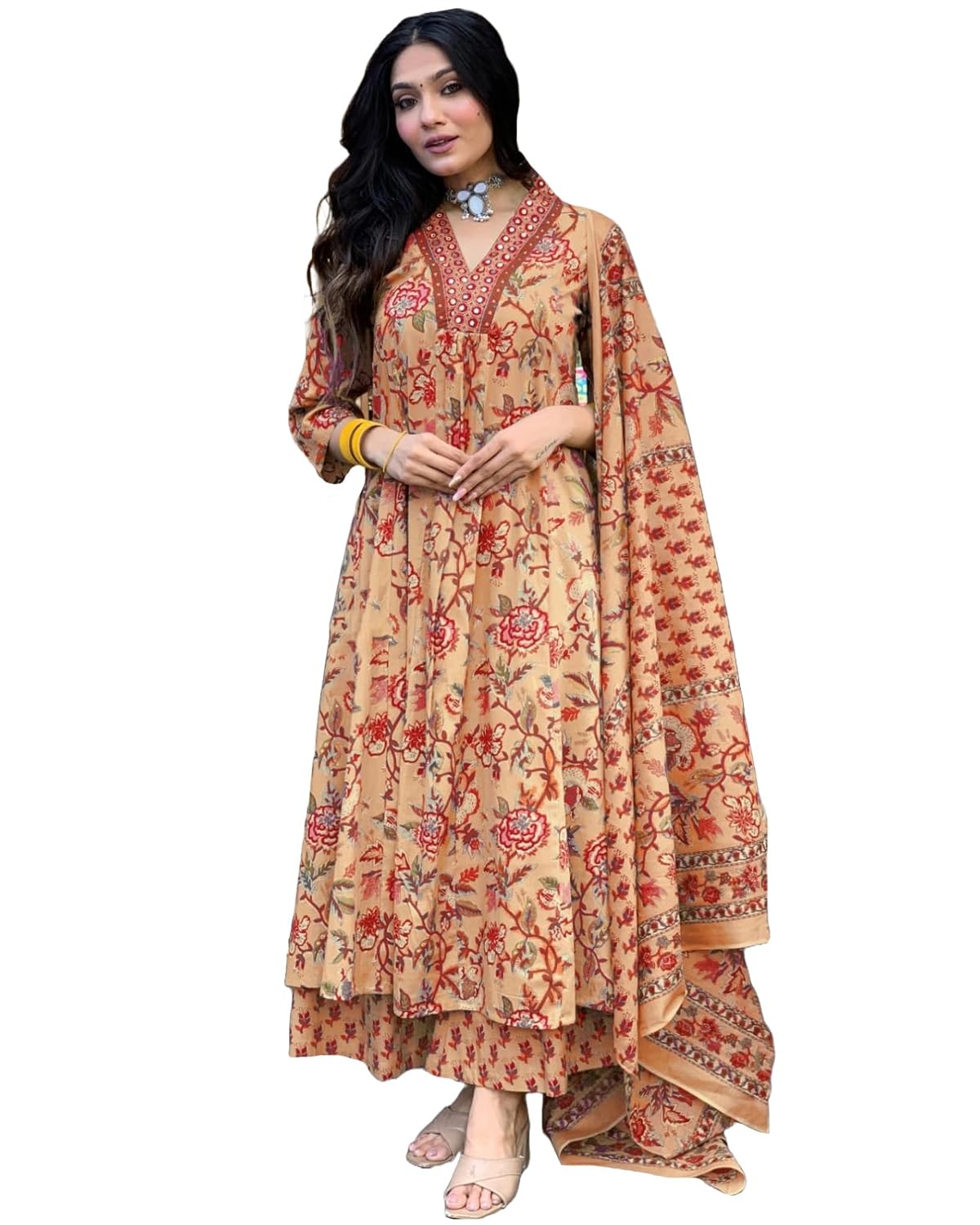 GoSriKi Women's Rayon Viscose Anarkali Printed Kurta with Palazzo & Dupatta